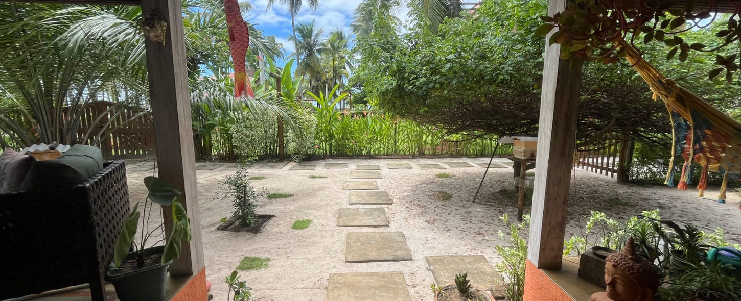 Iluminação externa: 13 luminárias de barro, 2 luminárias de madeira, 2 luminárias de palha (cozinha e varanda) e 12 luminárias de jardim holofotes