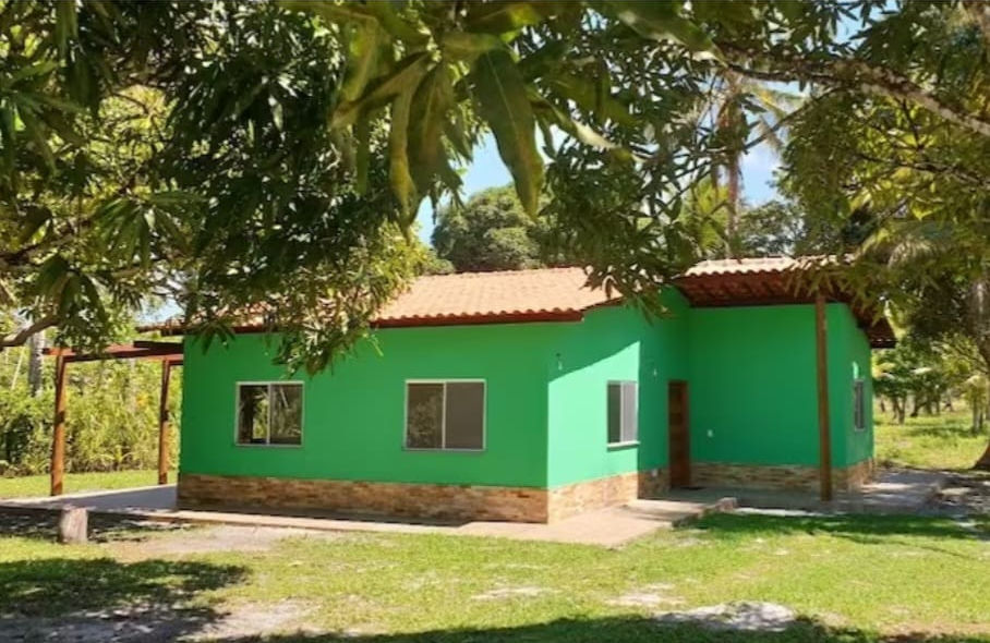 - Cada casa inclui geladeira, fogão e máquina de lavar